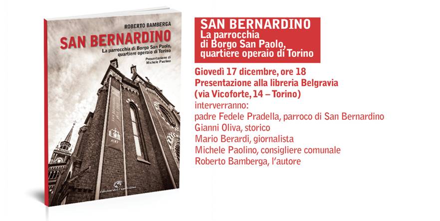 Ne parlano con l’ autore, Marco Bamberga, GIANNI OLIVA storico, padre FEDELE PRADELLA, parroco di San Bernardino, MARIO BERARDI giornalista, MICHELE PAOLINO, consigliere comunale da sempre attivo in borgo San Paolo